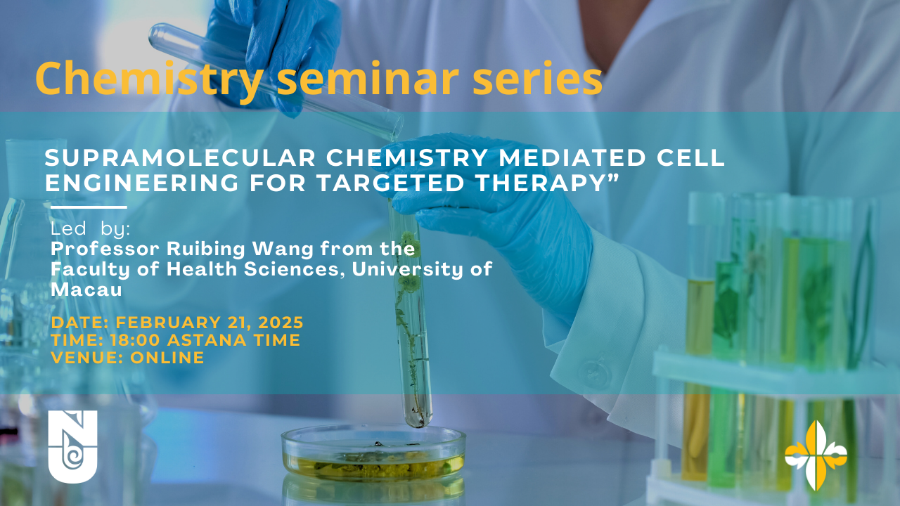 The Chemistry Seminar at Nazarbayev University is set to commence with an exciting invited research lecture titled “Supramolecular Chemistry Mediated Cell Engineering for Targeted Therapy” by distinguished guest speaker Professor Ruibing Wang from the Faculty of Health Sciences, University of Macau.