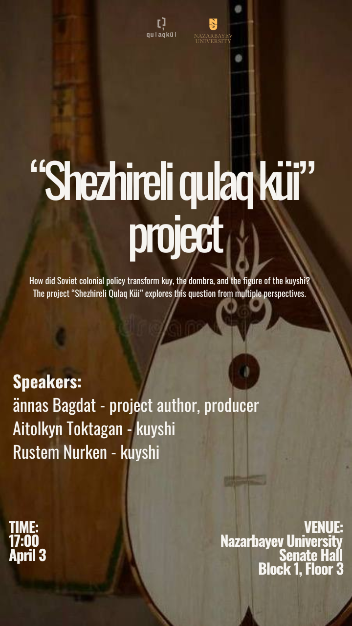 We invite you to a meeting presenting the «Shezhireli Qulaq Küi» project, organized as part of the «Kazakh Music History» course!