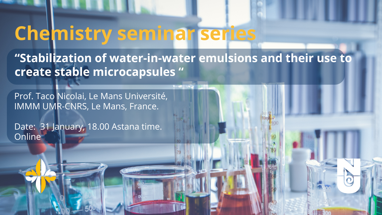 Chemistry Seminar Series at NU presents the invited research lecture “Stabilization of water-in-water emulsions and their use to create stable microcapsules “ by our guest speaker by Prof. Taco Nicolai, Le Mans Université, IMMM UMR-CNRS, Le Mans, France.