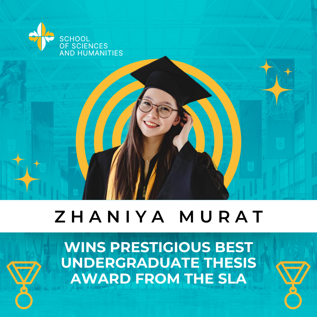 SSH Department of Languages, Linguistics, and Literature is thrilled to share the incredible news that one of our distinguished alumni, Zhaniya Murat (Class of 2023), has been awarded the prestigious Best Undergraduate Thesis prize from the Society of Linguistic Anthropology (SLA). This honor was bestowed in recognition of her senior Capstone project, titled "Multifunctionality of a Local Speech Marker: Case Study of Kazakh 'de' in Bilingual Speech," completed under the guidance of her primary advisor, Professor Eva-Marie Dubuisson.